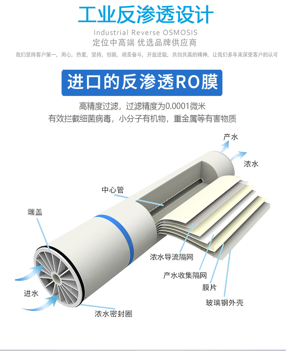 DI是一種將離子交換技術、離子交換膜技術和離子電遷移技術(電滲析技術)相結合的高純水制造技術。該技術利用離子交換能深度脫鹽來克服電滲析極化而脫鹽不干凈,又利用電滲析極化而發生水電離產生H和OH離子實現樹脂自再生來克服樹脂失效后通過化學藥劑再生的缺陷,是20世紀80年代以來逐漸興起的新技術。經過十幾年的發展,EDI技術已經在北美及歐洲占據了相當部分的超純水市場。EDI裝置屬于精處理水系統,一般多與反滲透(RO)配合使用,,組成預處理、反滲透、EDI裝置的超純水處理系統,,取代了傳統水處理工藝的混合離子交換設備。EDI裝置進水要求為電阻率為0.025-0.5MΩ·cm,反滲透設備可以滿足要求。EDI純水設備可生產電阻率高達18MΩ·cm以上的超純水。