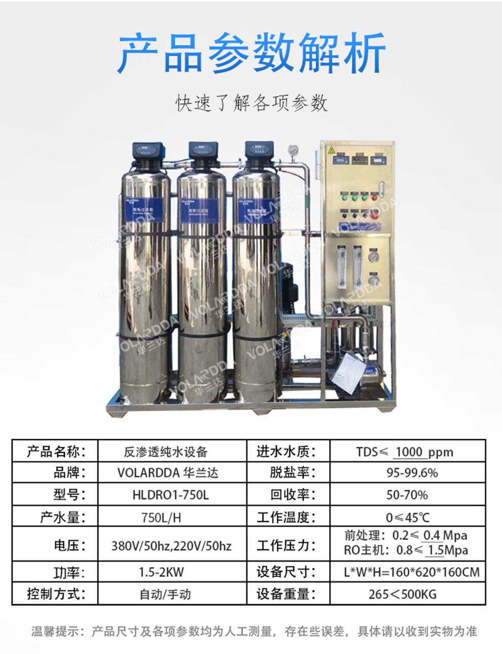 反滲透設(shè)備主要特點(diǎn):1.常溫不發(fā)生相變化的條件下,可以對(duì)溶質(zhì)和水進(jìn)行分離,適用于對(duì)熱敏物質(zhì)分離、濃縮,并且與有相變化的分離方法相比,能耗較低。2.雜質(zhì)去除范圍廣,不只可以去除溶解的無(wú)機(jī)鹽類,而且還可以去除各類有機(jī)物雜質(zhì)。3.較高的除鹽率和水的回用率,可截留粒徑幾個(gè)納米以上的溶質(zhì)。4.由于只是利用壓力作為膜分離的推動(dòng)力,因此分離裝置簡(jiǎn)單,容易操作、自控和維修。反滲透設(shè)備技術(shù)參數(shù):1、單機(jī)產(chǎn)水:0.2