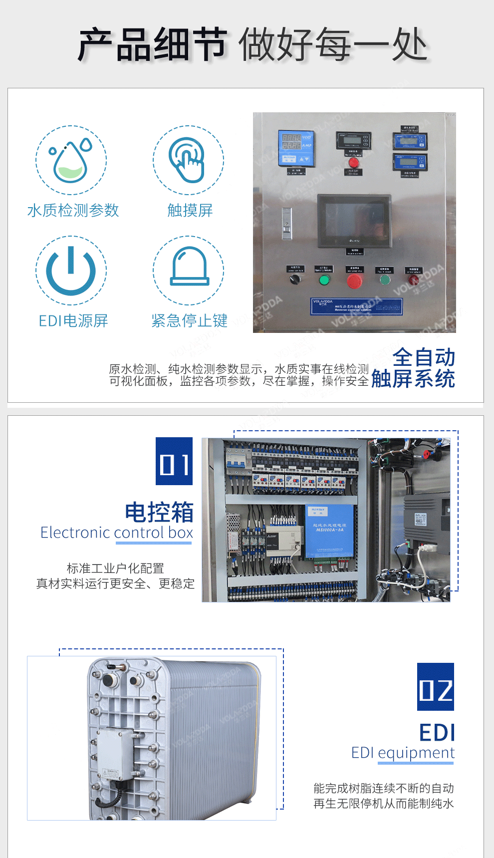 1.可連續生產,產水電阻率高≥ 15 MΩ.cm