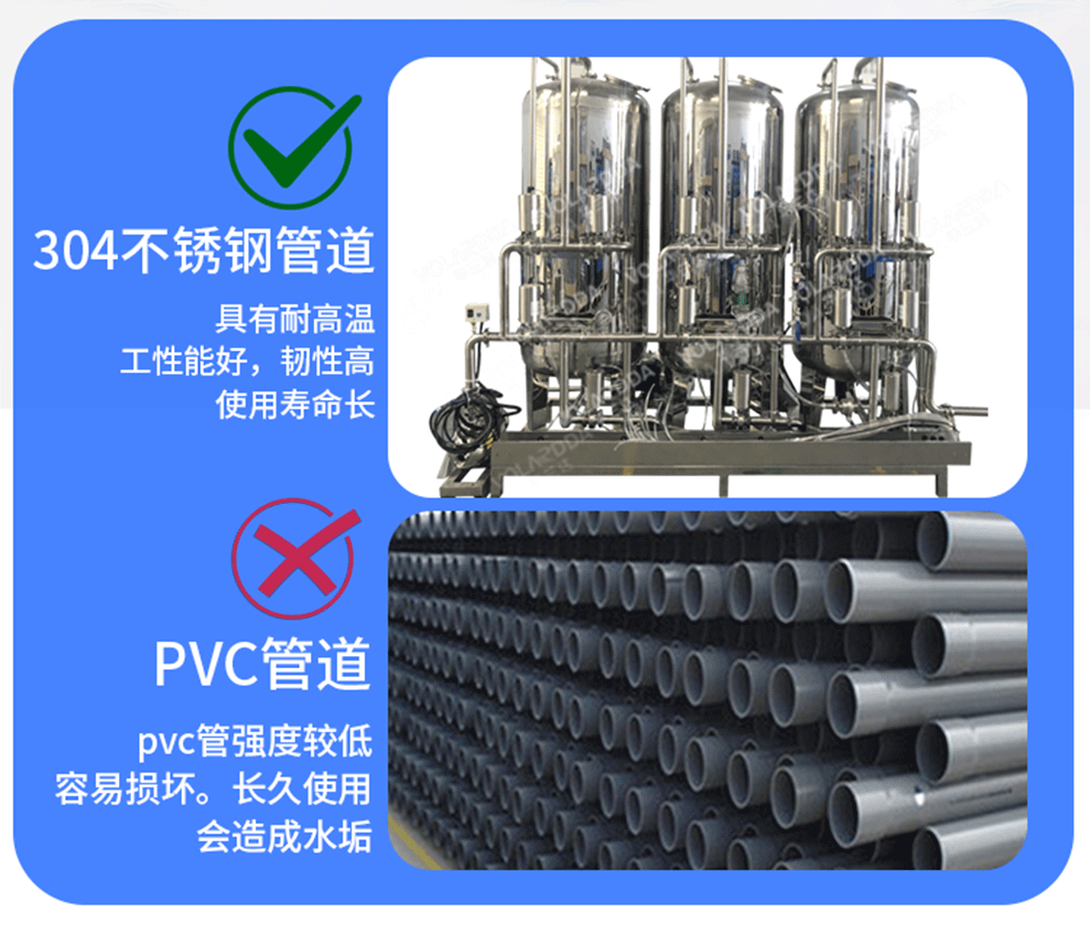 2、脫鹽率:反滲透系統>99%(根據客戶終端用水要求,可定制單級或雙級反滲透機)