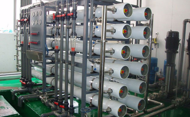 工業(yè)純水設備(外文譯名 Pure water one),它采用的是主要是反滲透膜技術。它的工作原理是對水施加一定的壓力,使水分子和離子態(tài)的礦物質元素通過反滲透膜,而溶解在水中的絕大部分無機鹽(包括重金屬)、有機物以及細菌、病毒等無法透過反滲透膜,從而使?jié)B透過的純凈水和無法滲透過的濃縮水嚴格的分開;反滲透膜上的孔徑只有0.0001微米,而病毒的直徑一般有0.02-0.4微米,普通細菌的直徑有0.4-1微米。